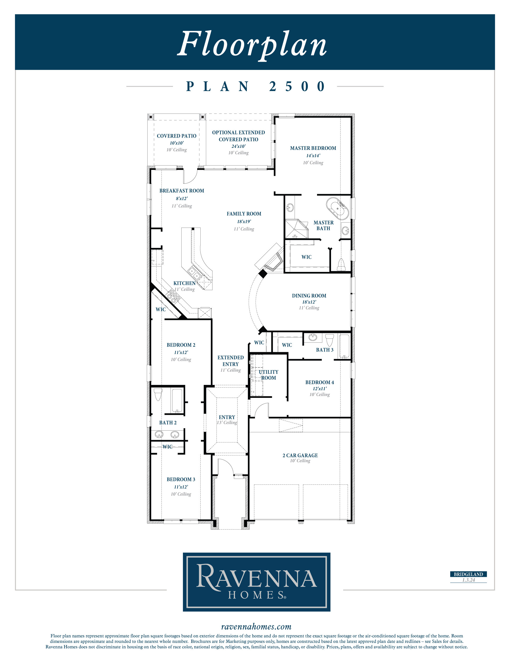 1-story floor plan features a large entry with 13' ceilings. It leads through a large gallery to the kitchen that is central to the home and open to the breakfast and family room, all with 11' ceilings. The kitchen features 42" raised panel cabinets with built-in stainless steel microwave plus oven with separate gas cooktop. An extensive island and bar seating overlooks the family room. Entry to the 19' deep dining room is flanked by columns with curved wall above. Master bath includes corner tub, separate shower and His and Hers vanities.