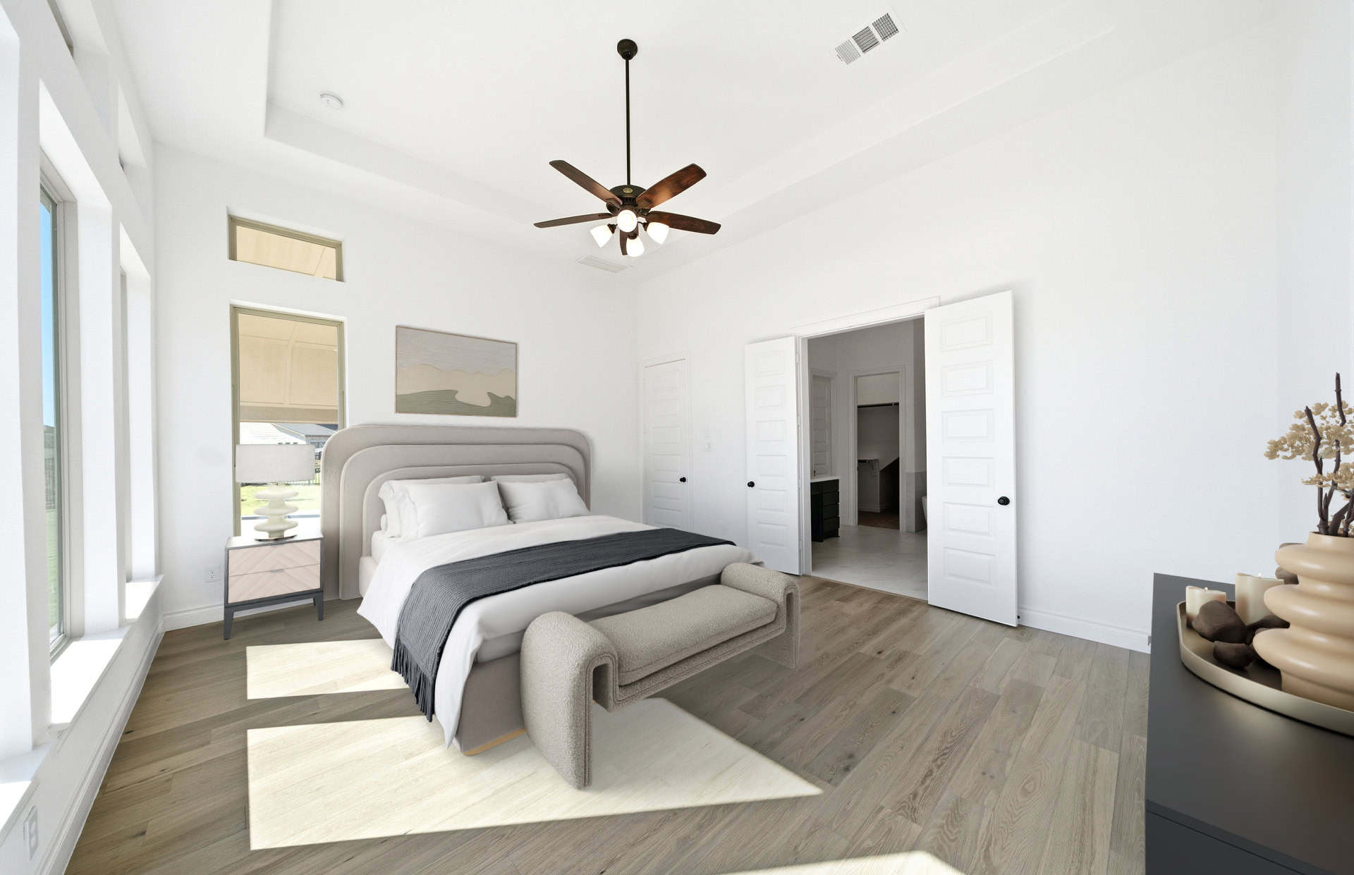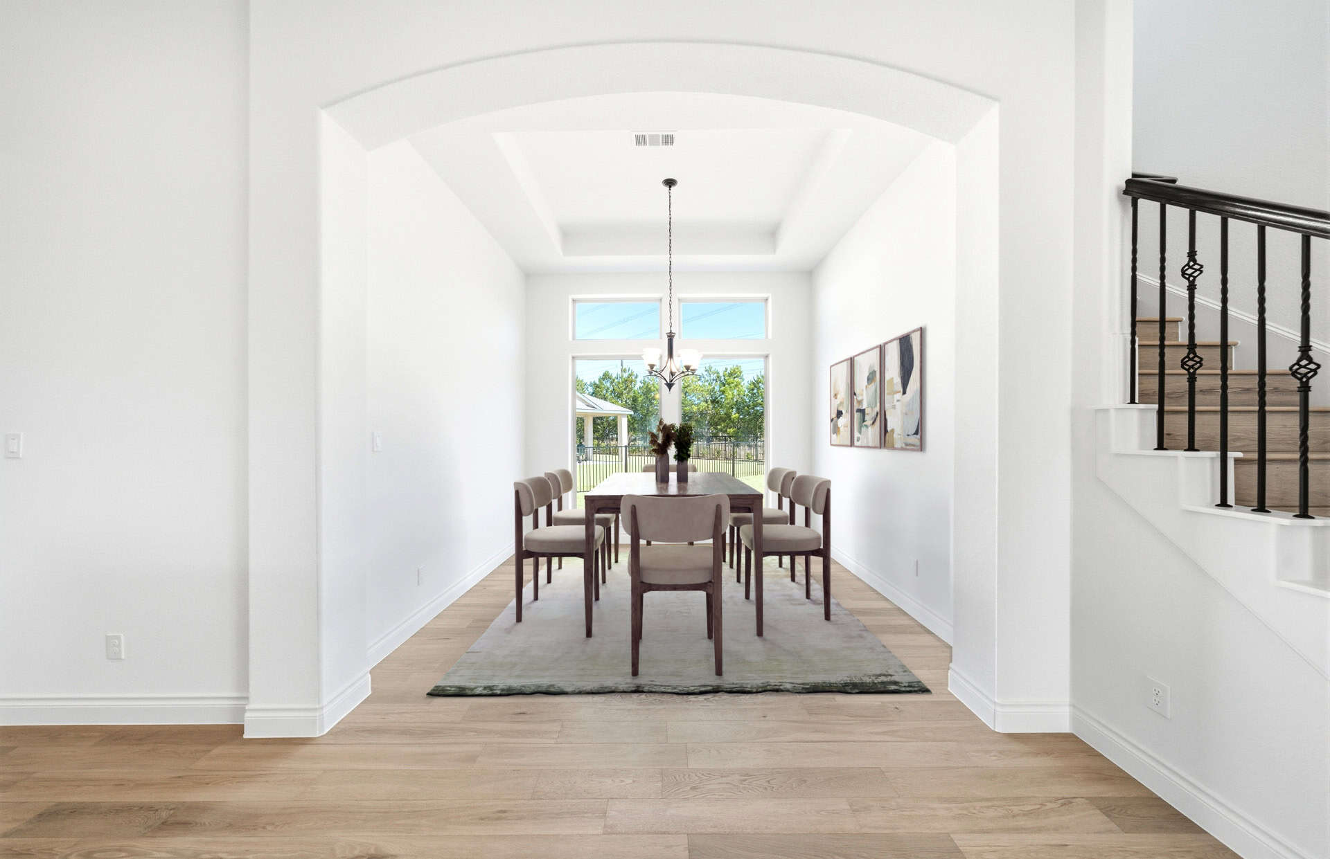 1½-story home features wood floors and an oval ceiling upon entry and has 4 bedrooms and 3½ bathrooms downstairs. The wood floors flow throughout the library, family, dining, and kitchen areas. This showcase kitchen includes painted cabinets, stone countertops and stainless-steel appliances. A large family room with floor to ceiling windows looks out onto an oversized 29’x14’ covered patio that overlooks a spacious backyard. Upstairs features a game room, 5th bedroom, and a 4th full bath. Home sits on a cul-de-sac lot with no back neighbors and is complete with a 4-car garage.