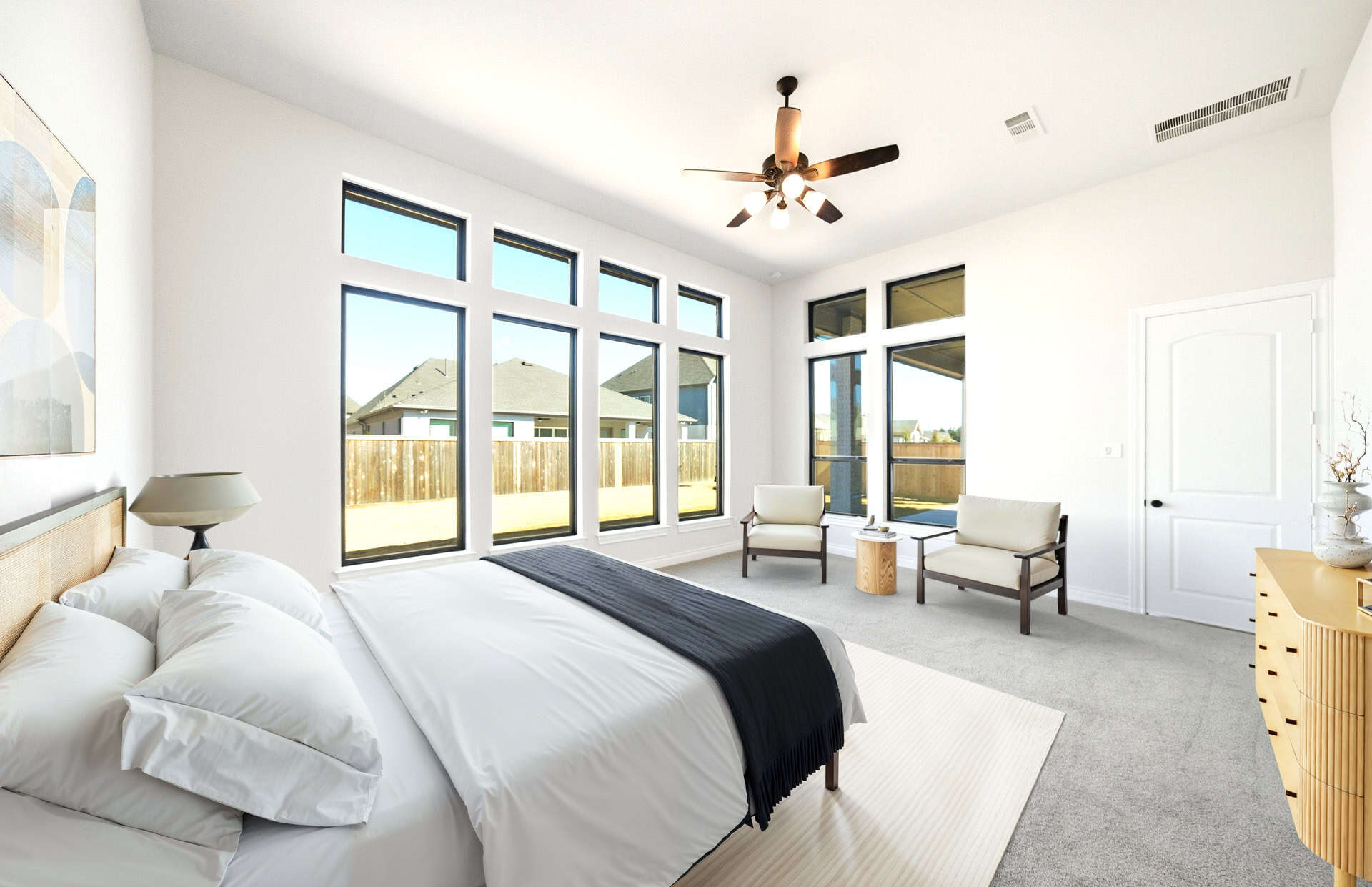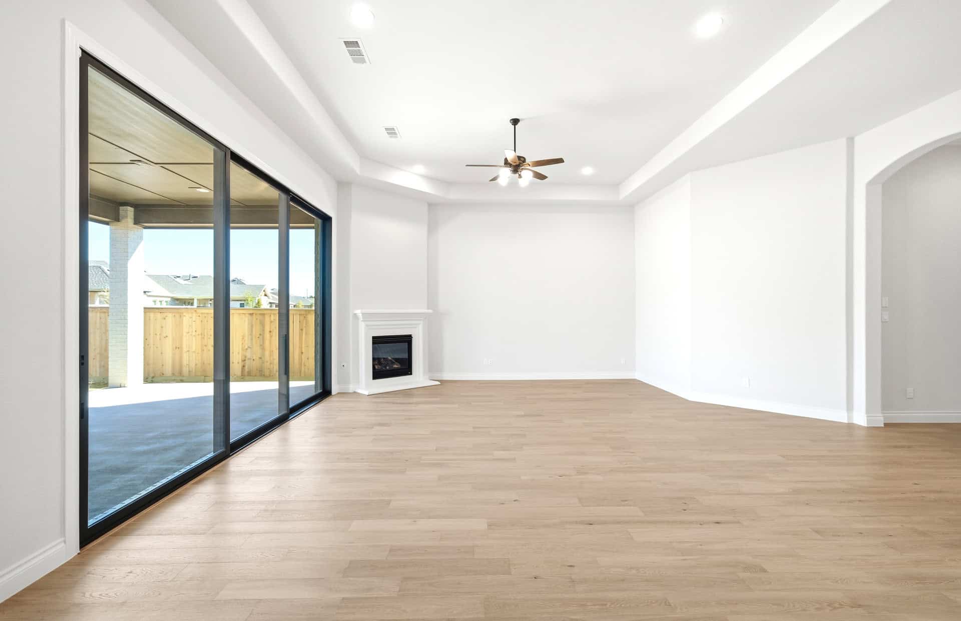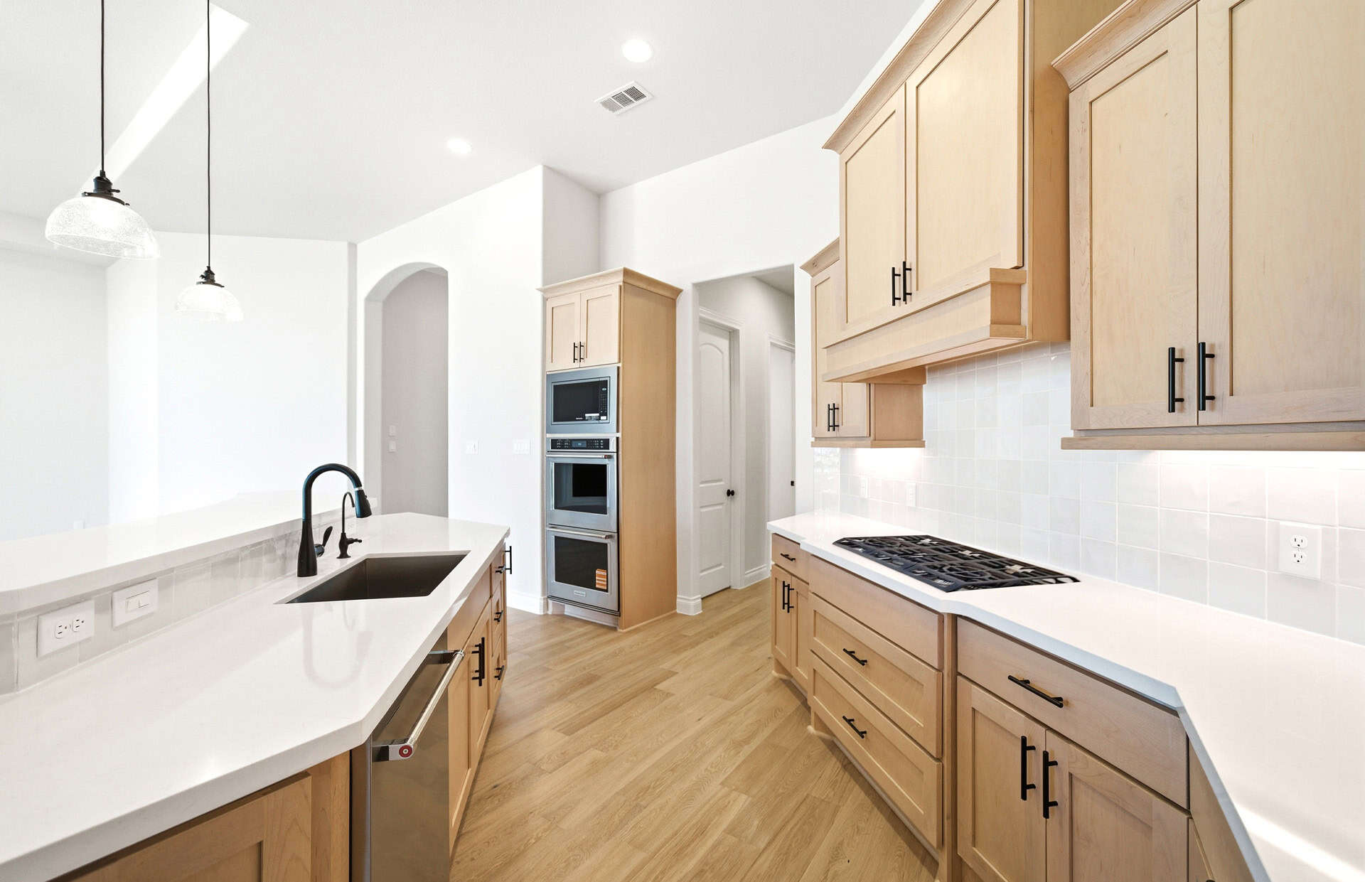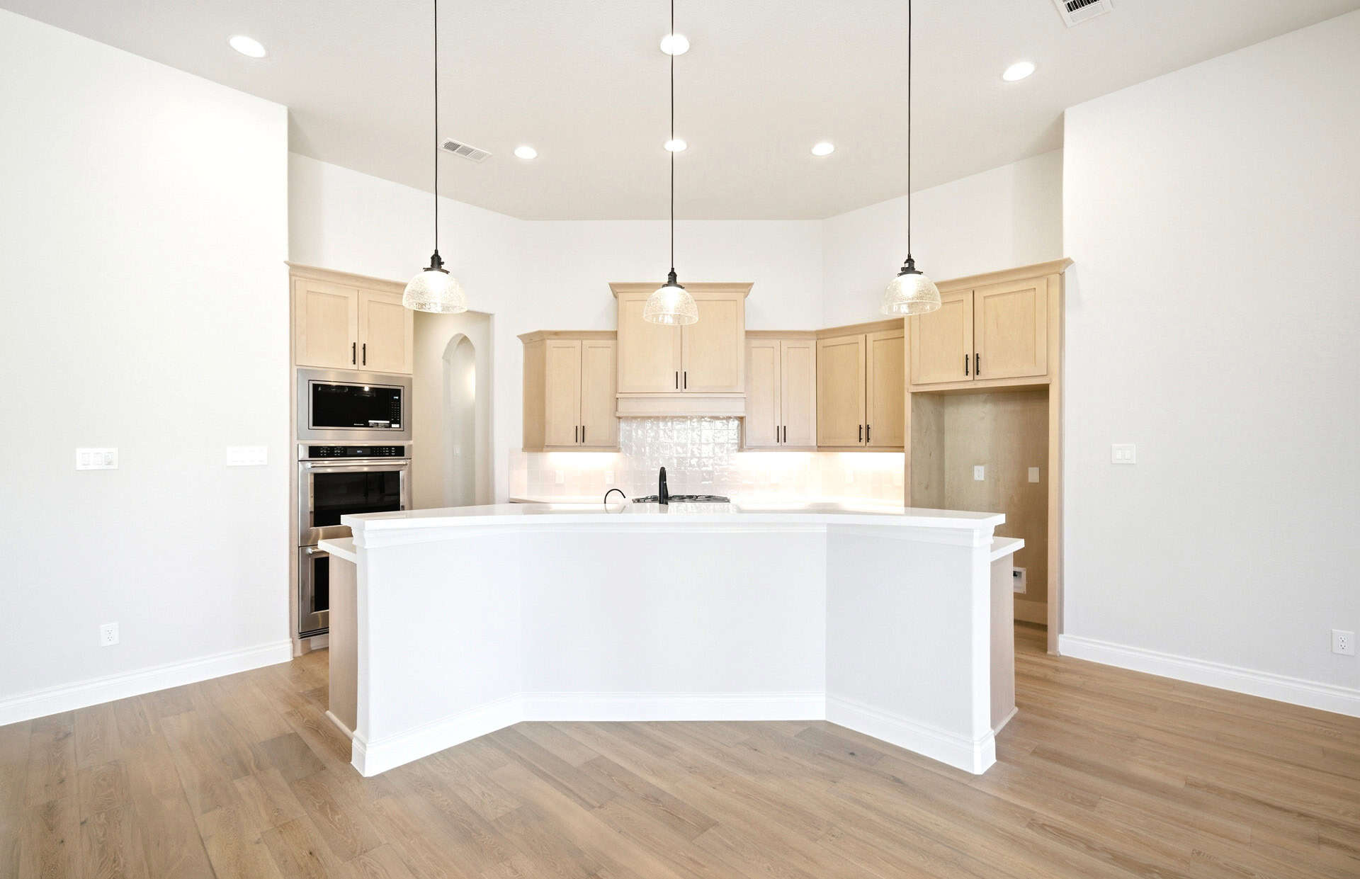1-story floor plan features an open concept kitchen with 42" cabinets, built-in stainless steel microwave plus oven with separate gas cooktop. The large 22'x19' family room has 13' ceilings, a corner fireplace, and a full wall of windows. The master bath includes corner tub, separate shower, and a large walk in closet. Expansive 29’ wide covered patio overlooks a spacious backyard. Home is complete with a 3-car garage.