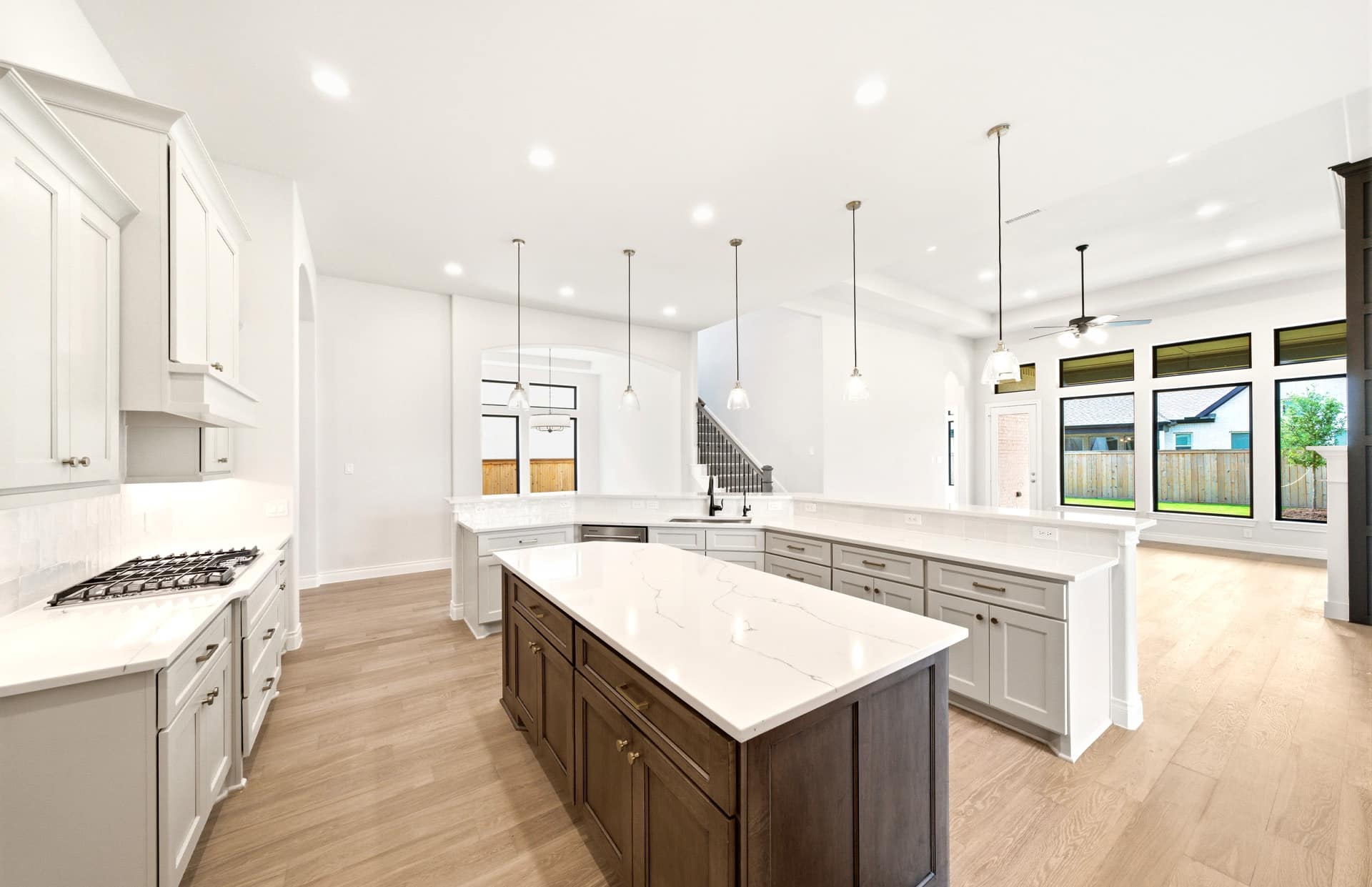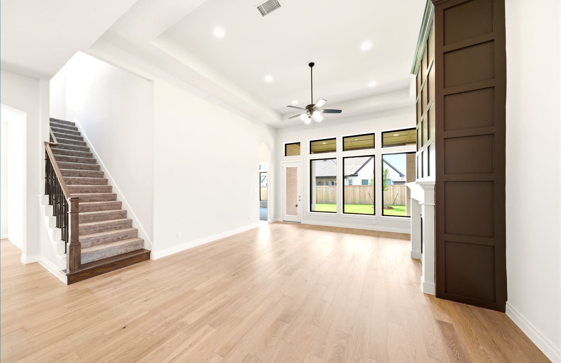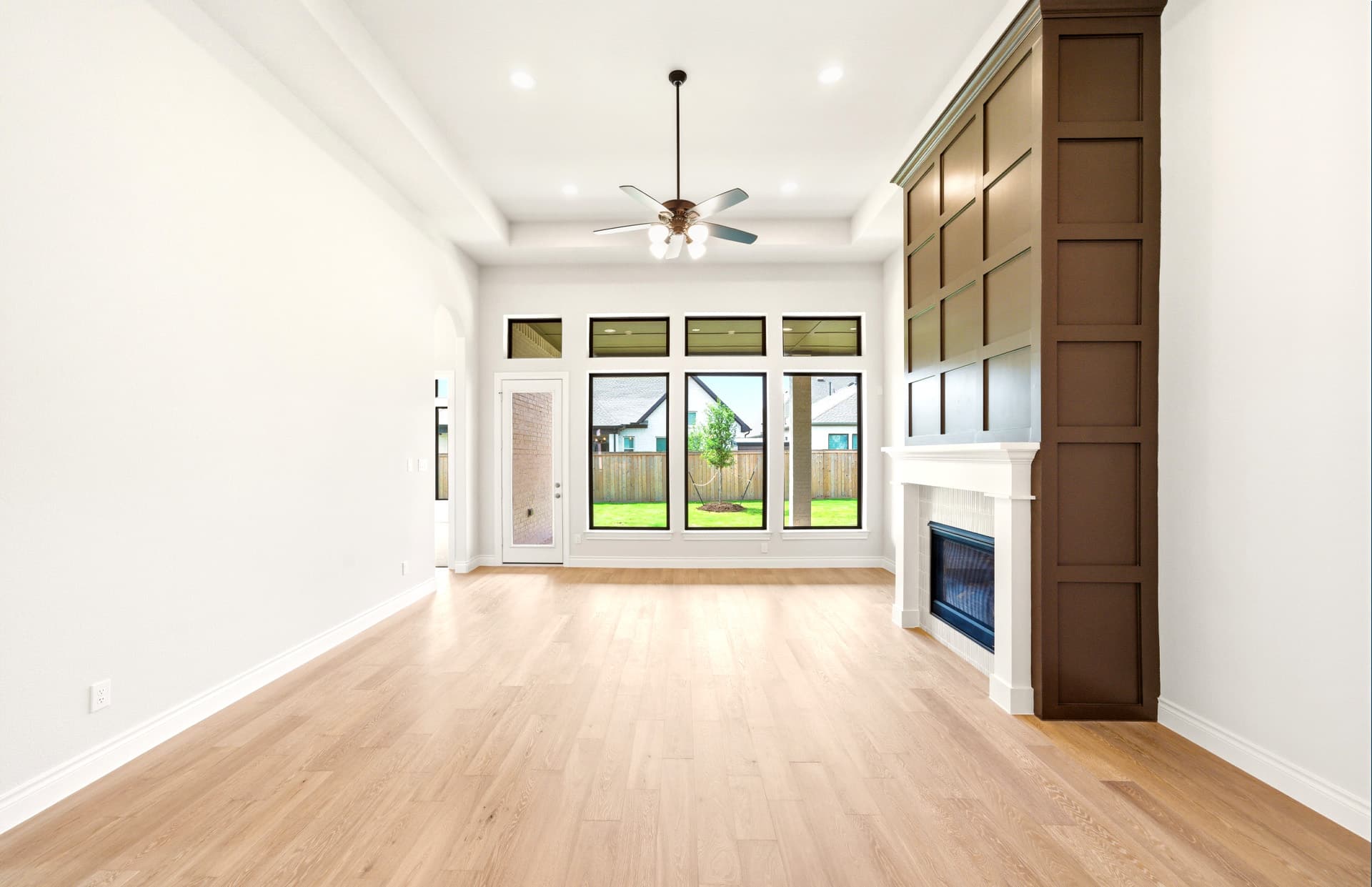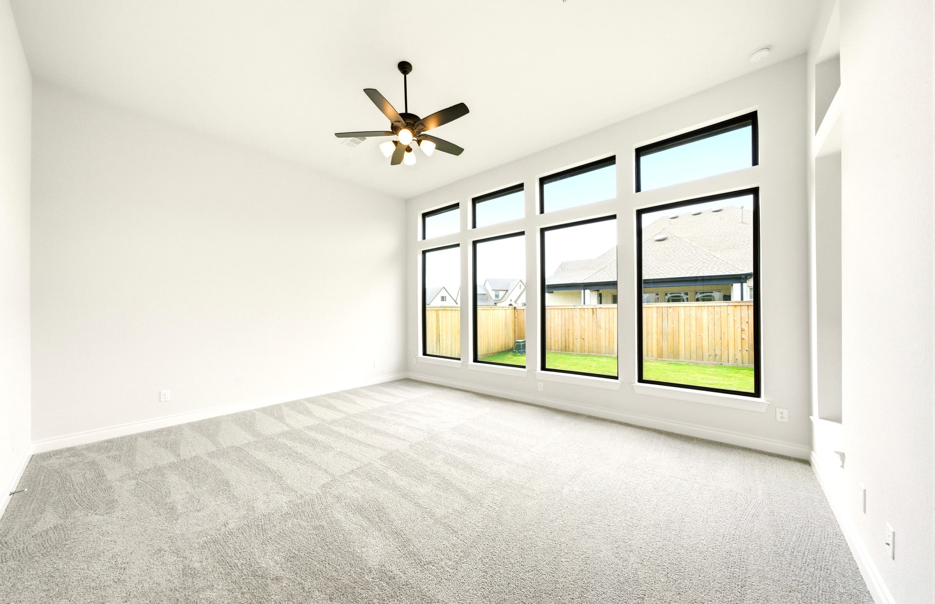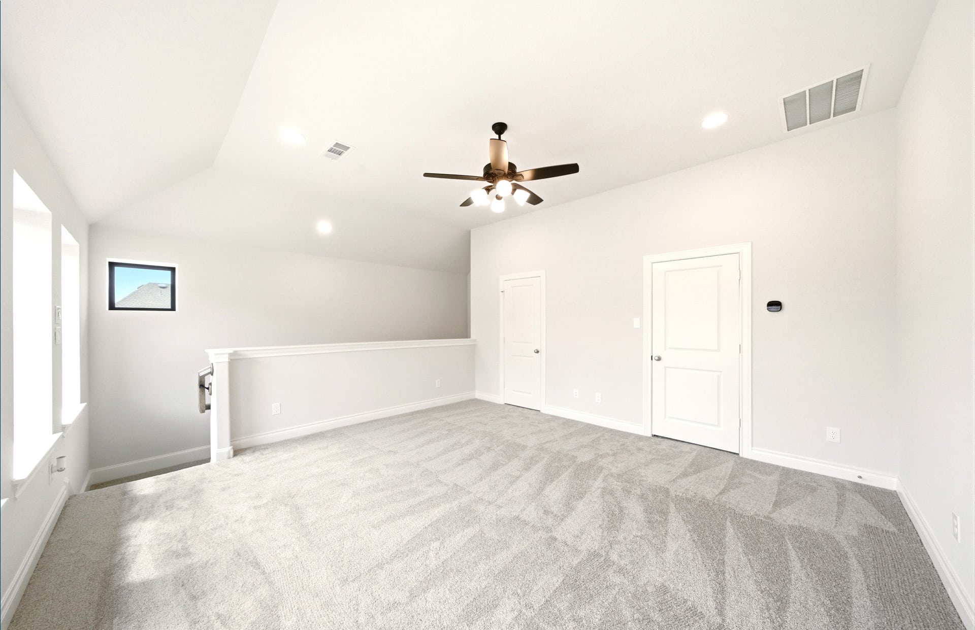 1½-story home features an elegant oval entry with 13' ceilings that open to the formal living room. The extended entry with a 12' ceiling is flanked by formal dining room on one side and kitchen on the opposite side. The kitchen is central to the home and open to the dining room, breakfast room and family room. It features a large island and 42" cabinets. The family room features a 14' ceiling, fireplace, and large wall of windows. Master bath includes a freestanding tub, separate shower, and His & Hers vanities. Located upstairs is a game room, theater room, and ½ bath. Home is complete with an oversized 29’ x 14’ covered patio overlooks the backyard.