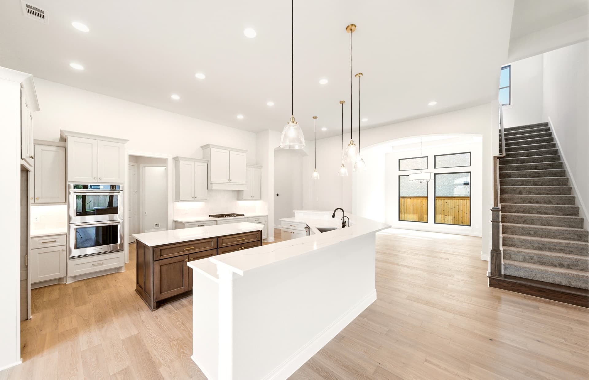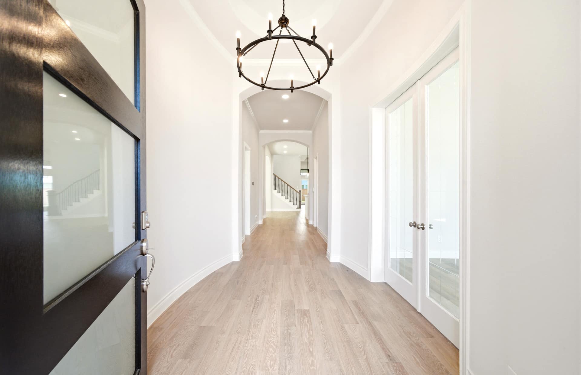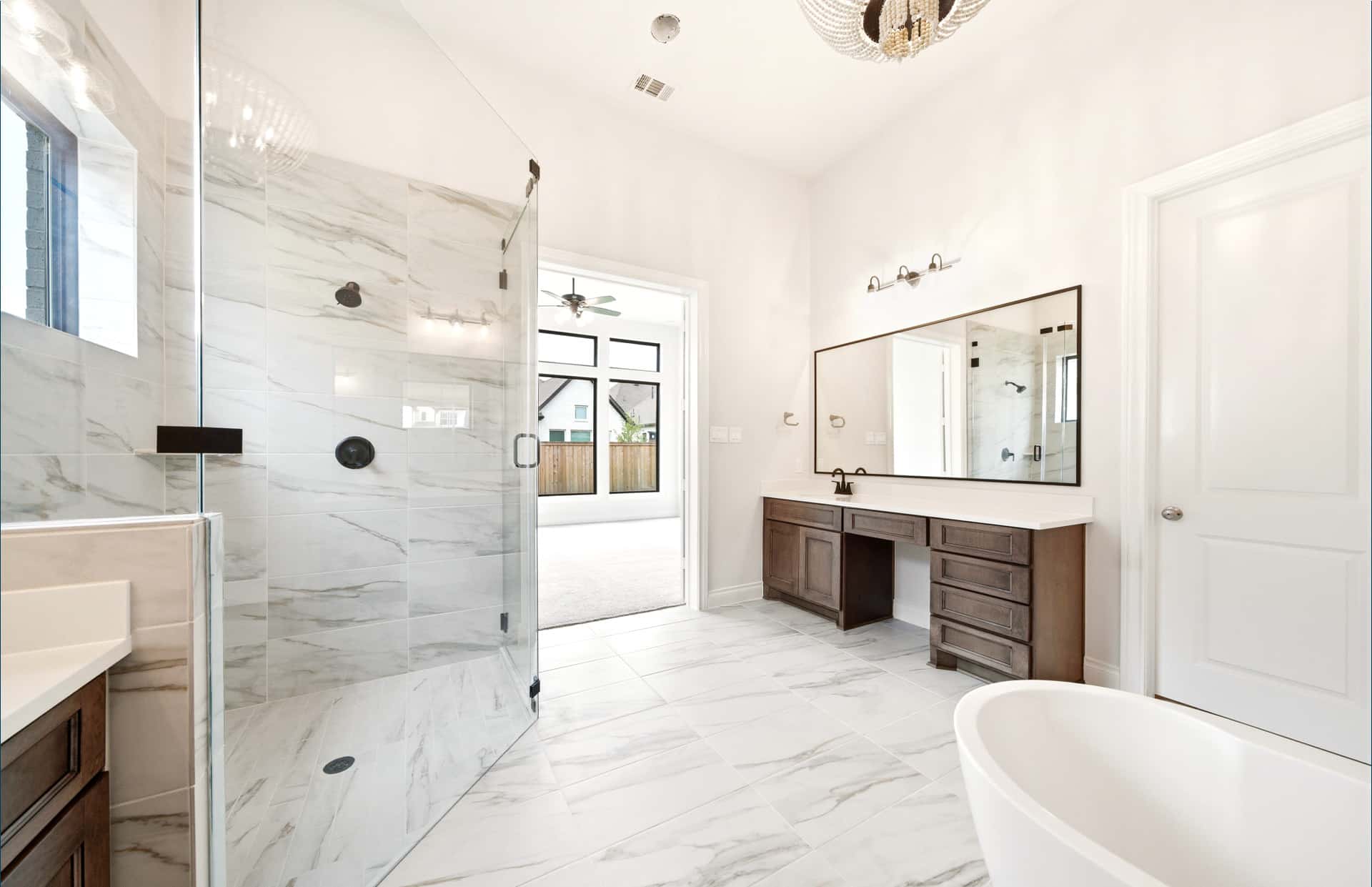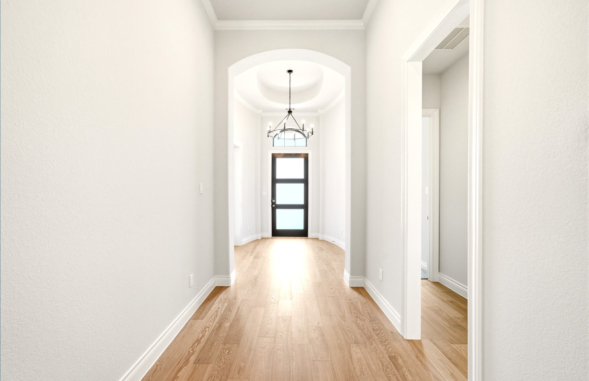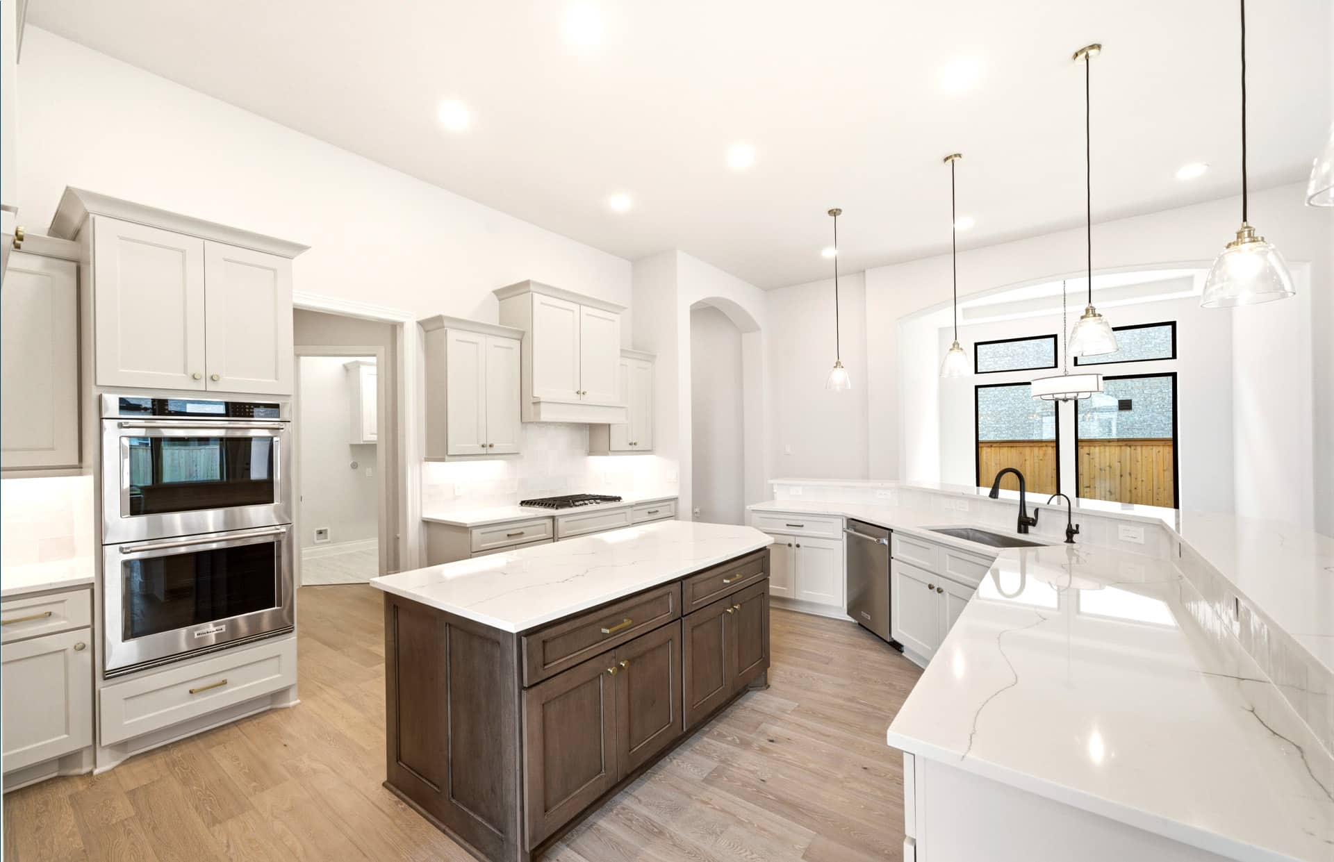 1½-story home features an elegant oval entry with 13' ceilings that open to the formal living room. The extended entry with a 12' ceiling is flanked by formal dining room on one side and kitchen on the opposite side. The kitchen is central to the home and open to the dining room, breakfast room and family room. It features a large island and 42" cabinets. The family room features a 14' ceiling, fireplace, and large wall of windows. Master bath includes a freestanding tub, separate shower, and His & Hers vanities. Located upstairs is a game room, theater room, and ½ bath. Home is complete with an oversized 29’ x 14’ covered patio overlooks the backyard.