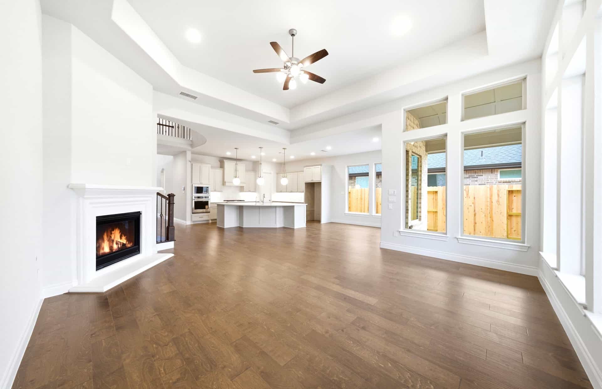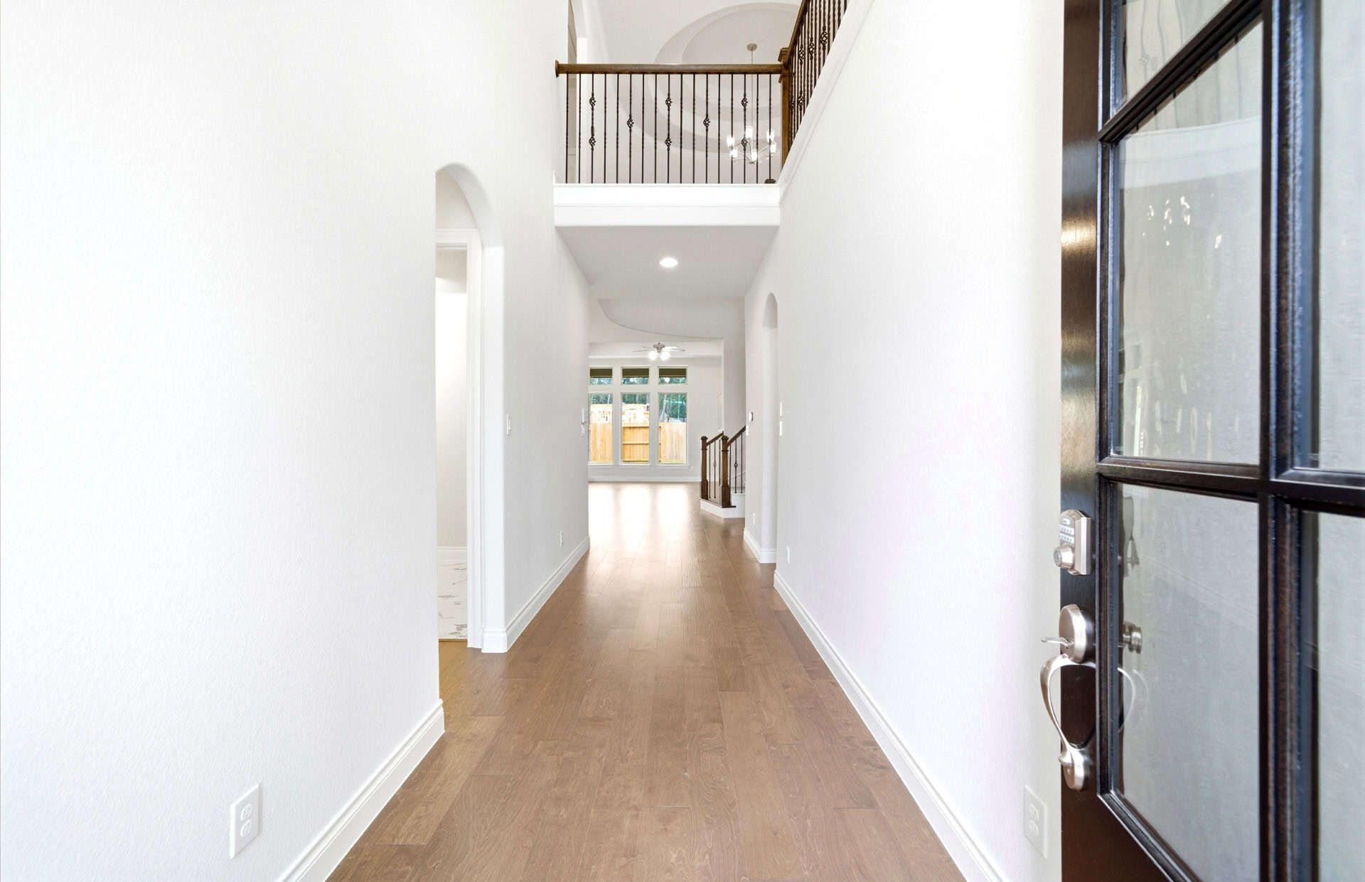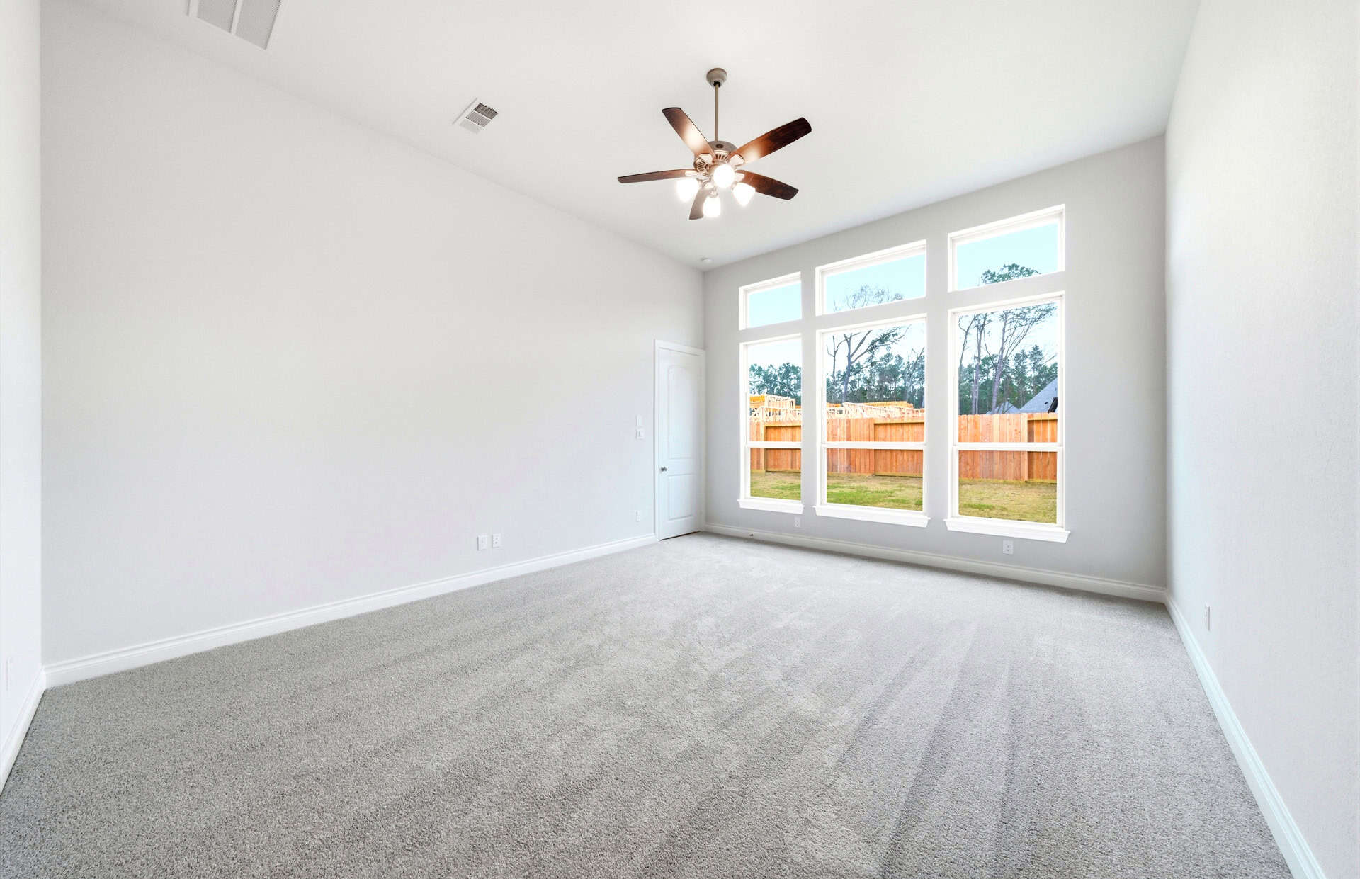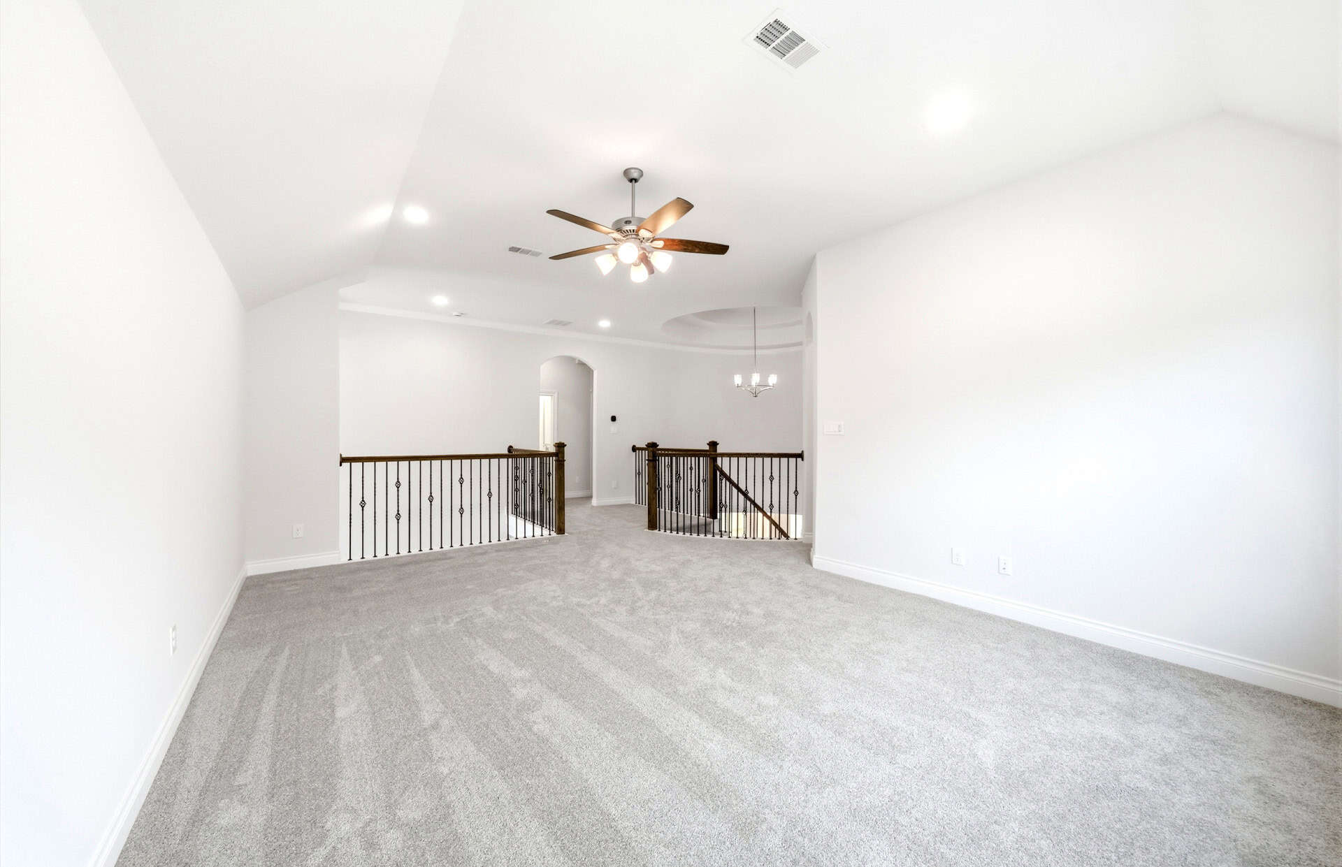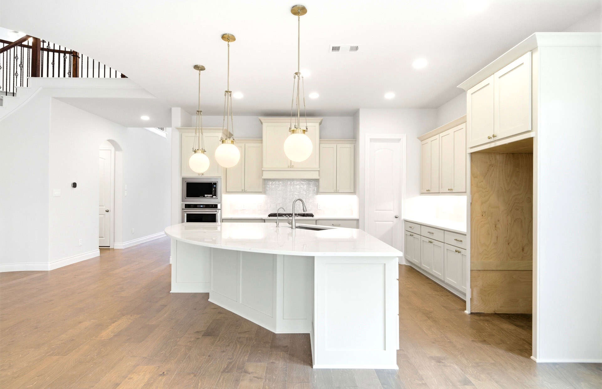 2-story floor plan features large entry with 21' ceilings that leads you to the statement staircase. The open concept layout connects the kitchen, large family room, and casual dining area. The kitchen features 42" cabinets, an oversized island, KitchenAid appliances including a 36” stainless steel cooktop. The centrally located family room displays 13' ceilings, a corner fireplace, and full wall of windows. The master bath includes a freestanding tub, separate shower, His and Hers vanities, and separate closets. Upstairs features a large 20'x14' game room, 2 bedrooms, and a full bath. Home is complete with an oversized 24' wide patio