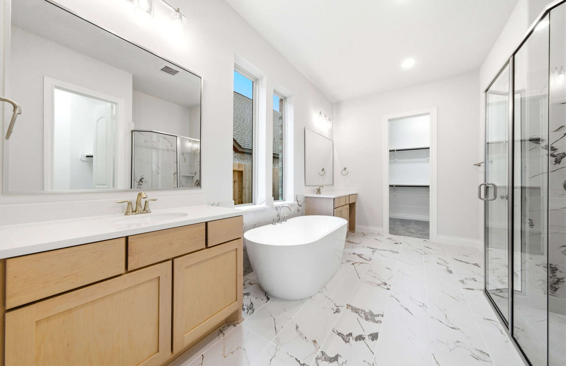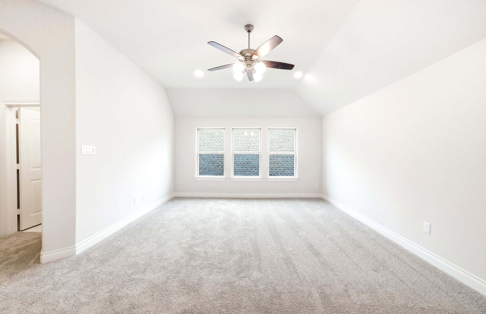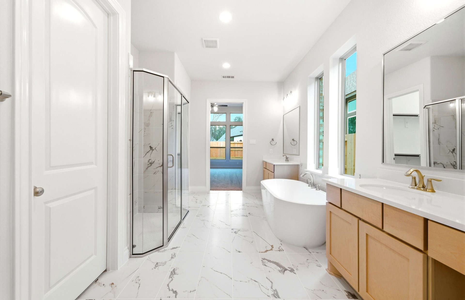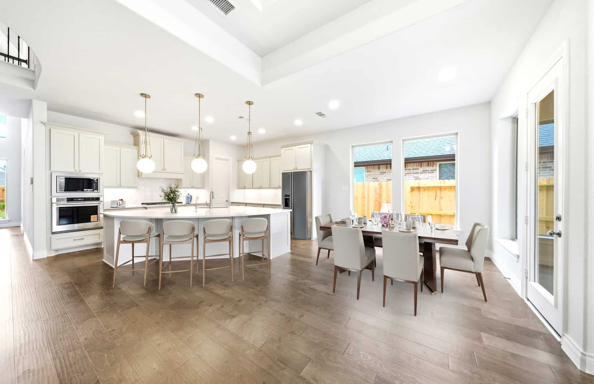 2-story floor plan features large entry with 21' ceilings that leads you to the statement staircase. The open concept layout connects the kitchen, large family room, and casual dining area. The kitchen features 42" cabinets, an oversized island, KitchenAid appliances including a 36” stainless steel cooktop. The centrally located family room displays 13' ceilings, a corner fireplace, and full wall of windows. The master bath includes a freestanding tub, separate shower, His and Hers vanities, and separate closets. Upstairs features a large 20'x14' game room, 2 bedrooms, and a full bath. Home is complete with an oversized 24' wide patio