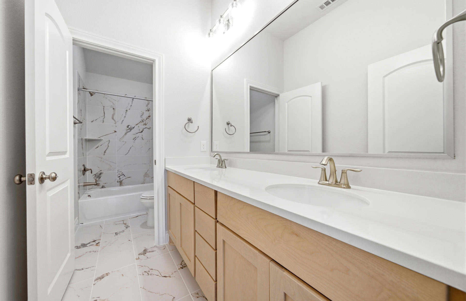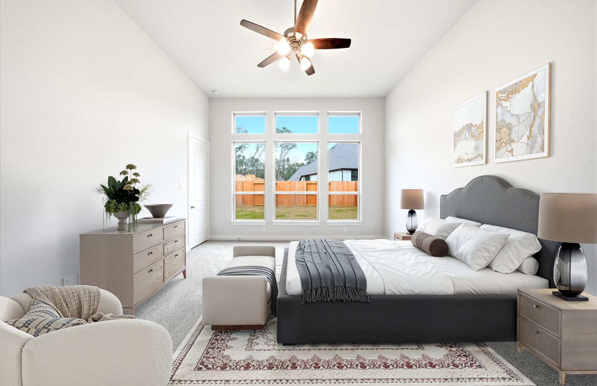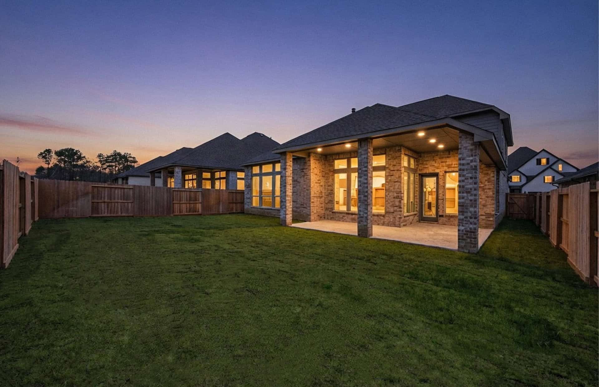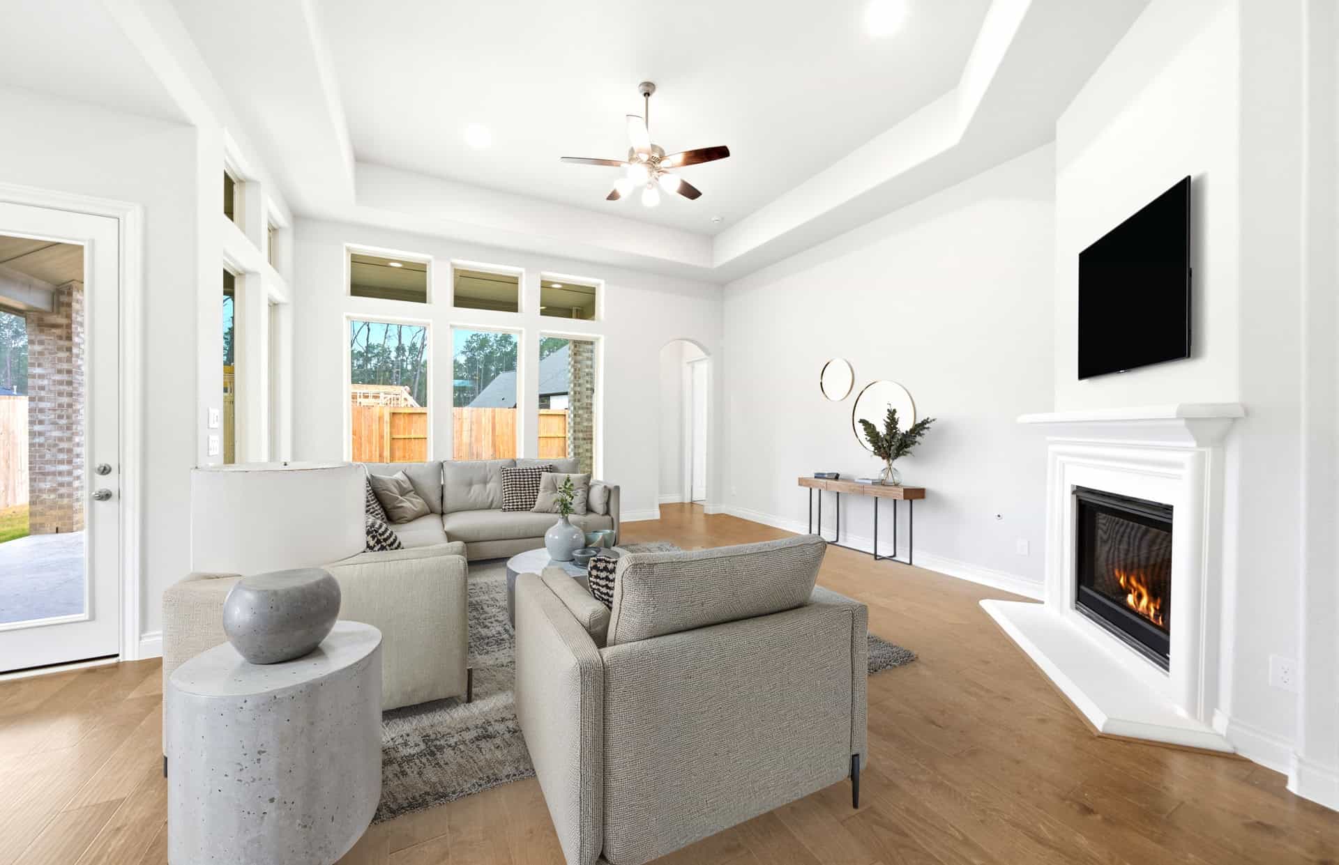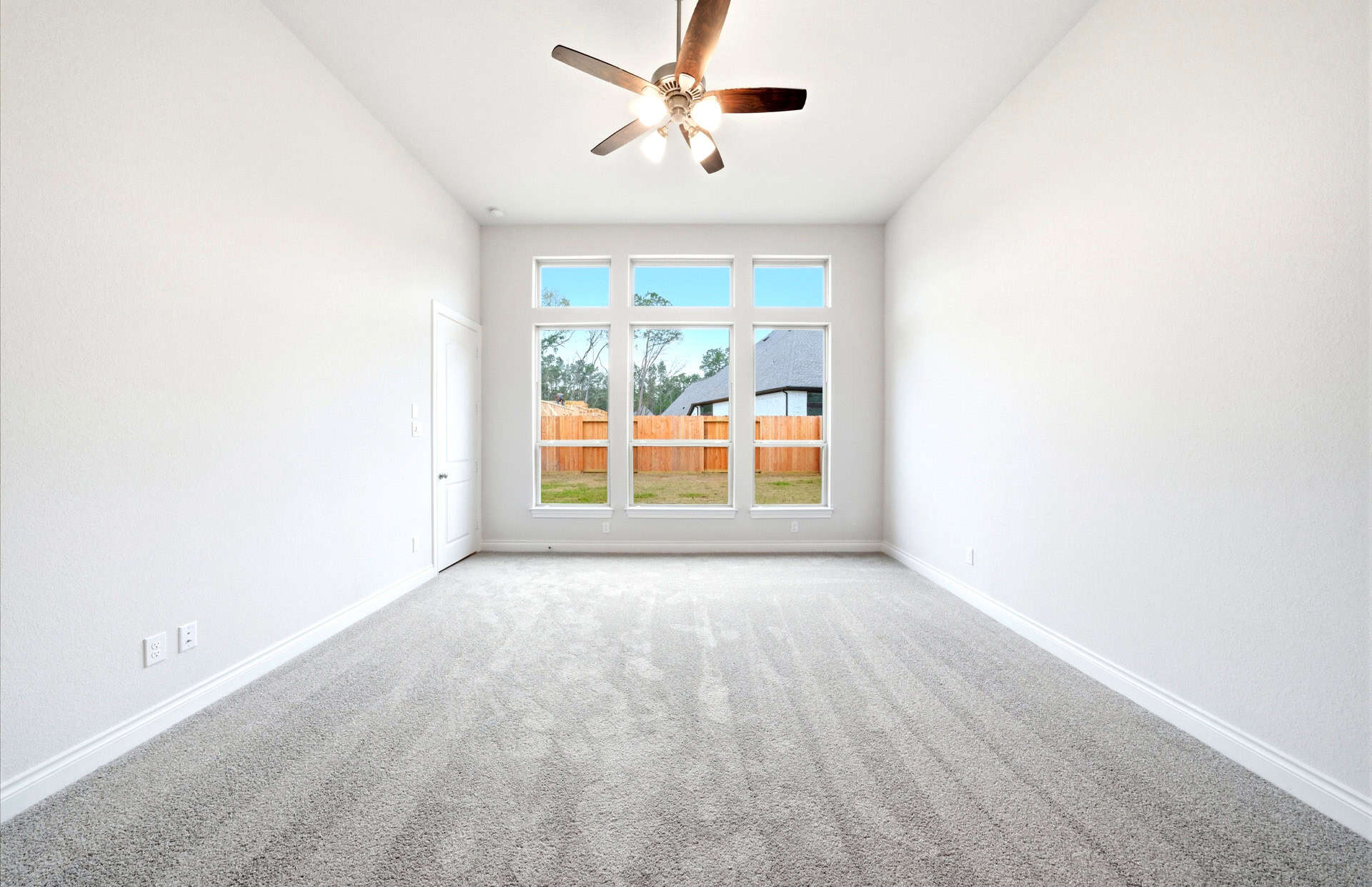 2-story floor plan features large entry with 21' ceilings that leads you to the statement staircase. The open concept layout connects the kitchen, large family room, and casual dining area. The kitchen features 42" cabinets, an oversized island, KitchenAid appliances including a 36” stainless steel cooktop. The centrally located family room displays 13' ceilings, a corner fireplace, and full wall of windows. The master bath includes a freestanding tub, separate shower, His and Hers vanities, and separate closets. Upstairs features a large 20'x14' game room, 2 bedrooms, and a full bath. Home is complete with an oversized 24' wide patio