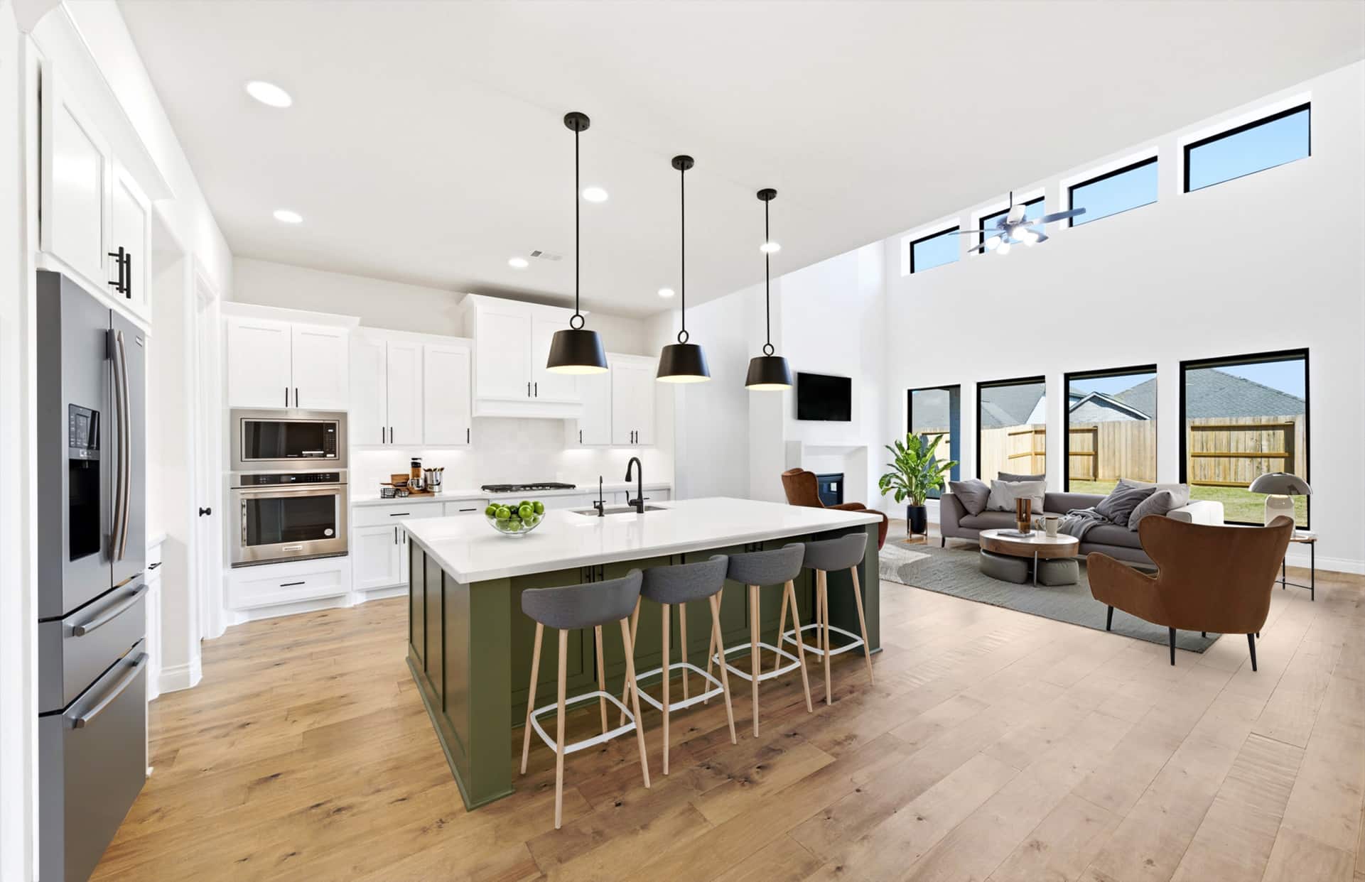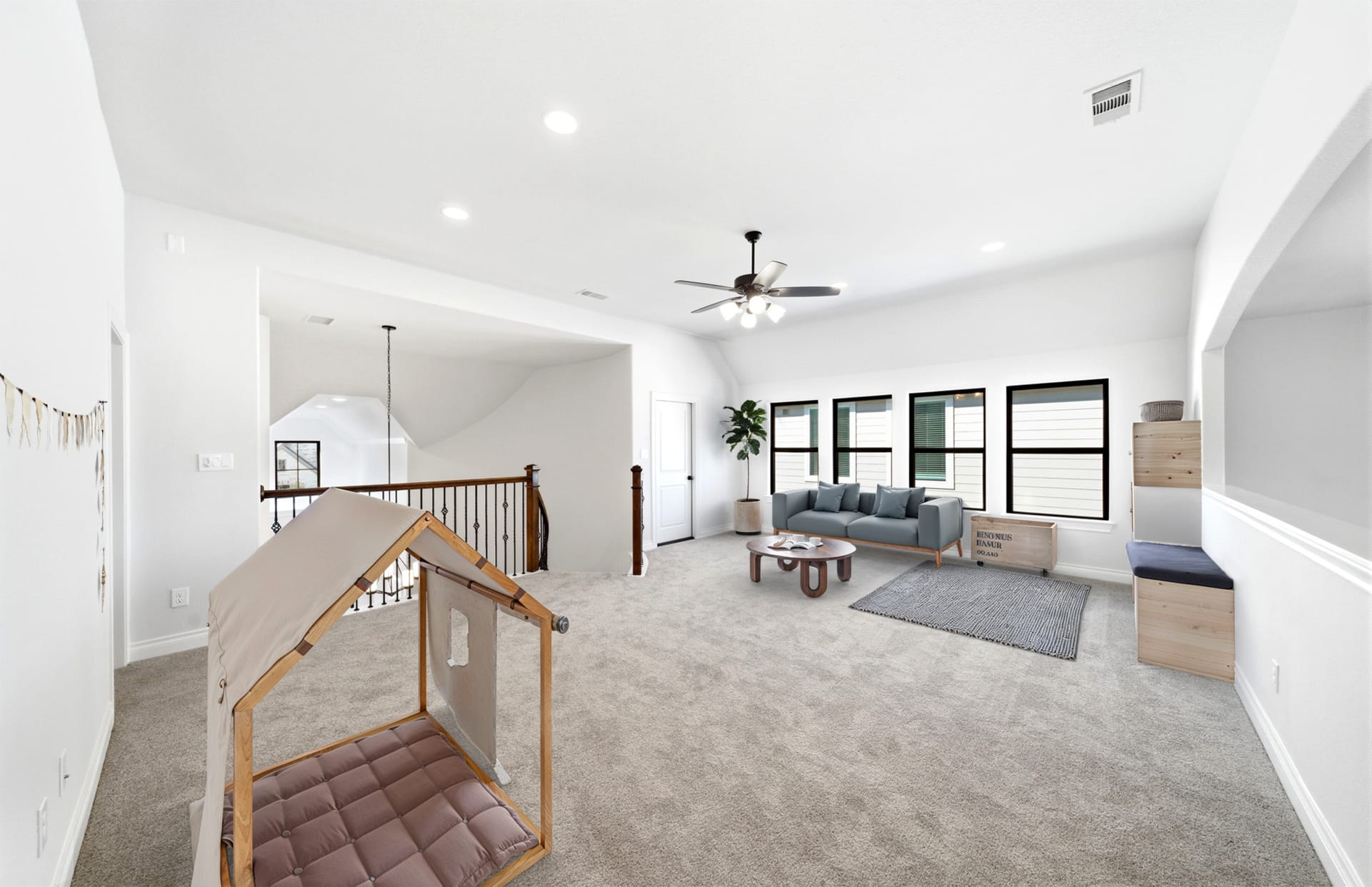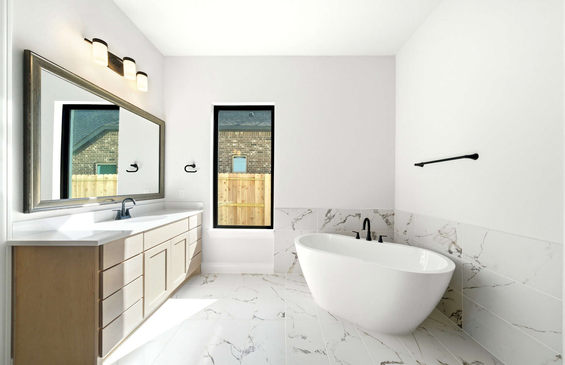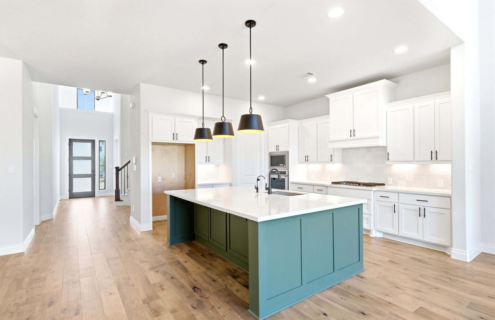 2-story home features an extended entry with 21’ ceilings that leads you into a study, the open concept kitchen, dining, and family rooms that is flooded with natural light from floor to ceiling windows in the family room. The centrally located kitchen features 42” cabinets and an oversized island with high-bar seating. A large staircase leads you to an expansive game room as well as 3 bedrooms and 2 full baths. The master bath includes a freestanding tub, separate shower, His and Hers vanities, and an oversized closet. Home is complete with a 2½ car garage.