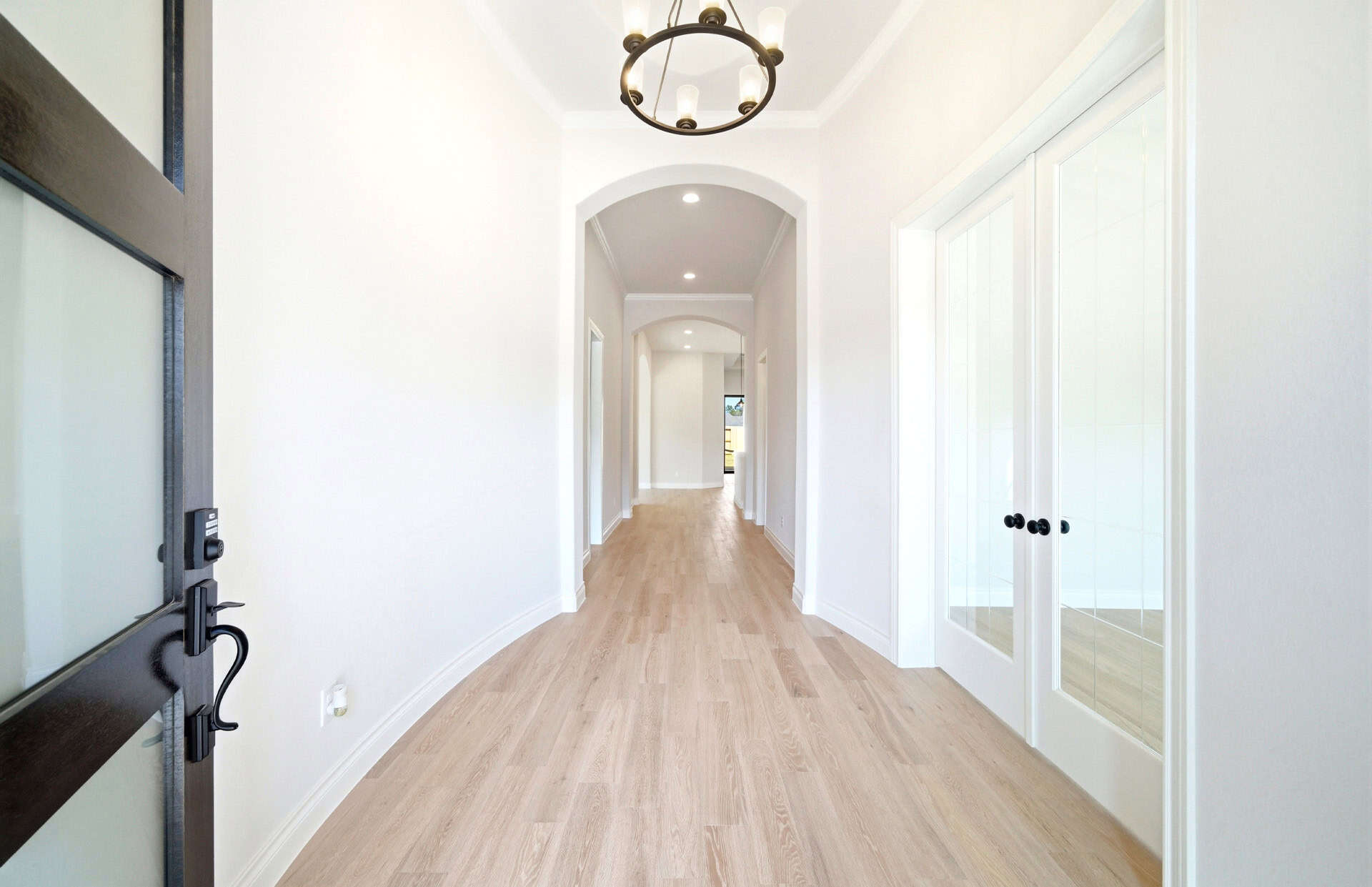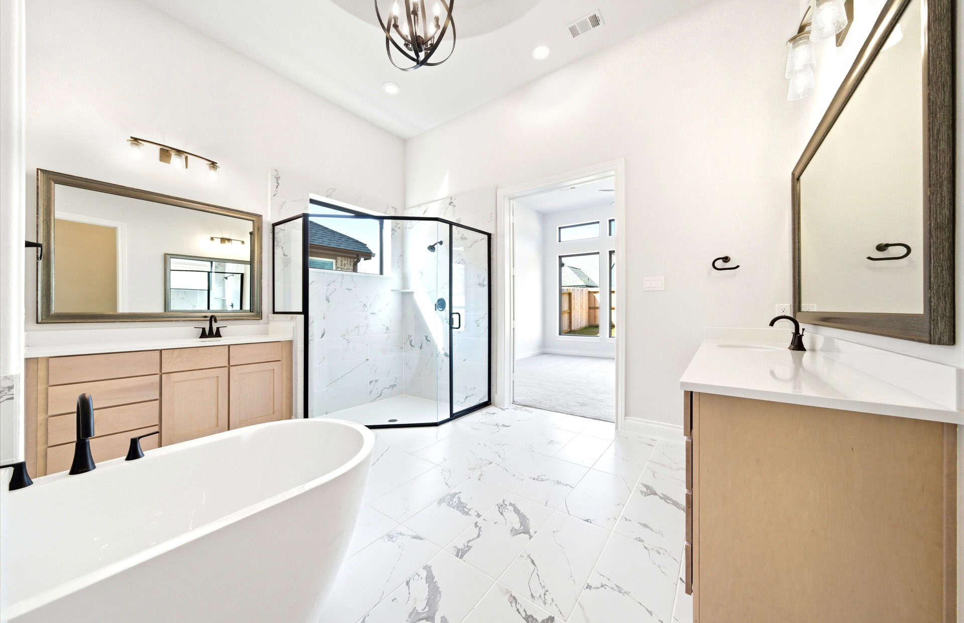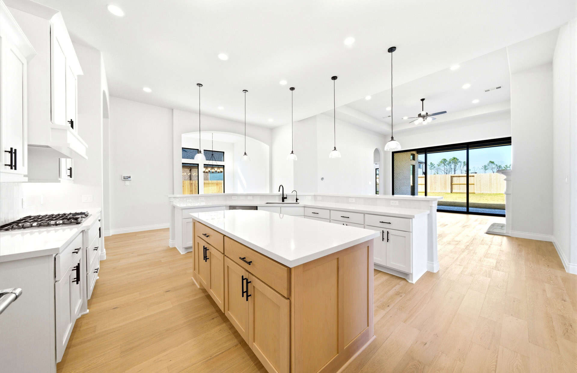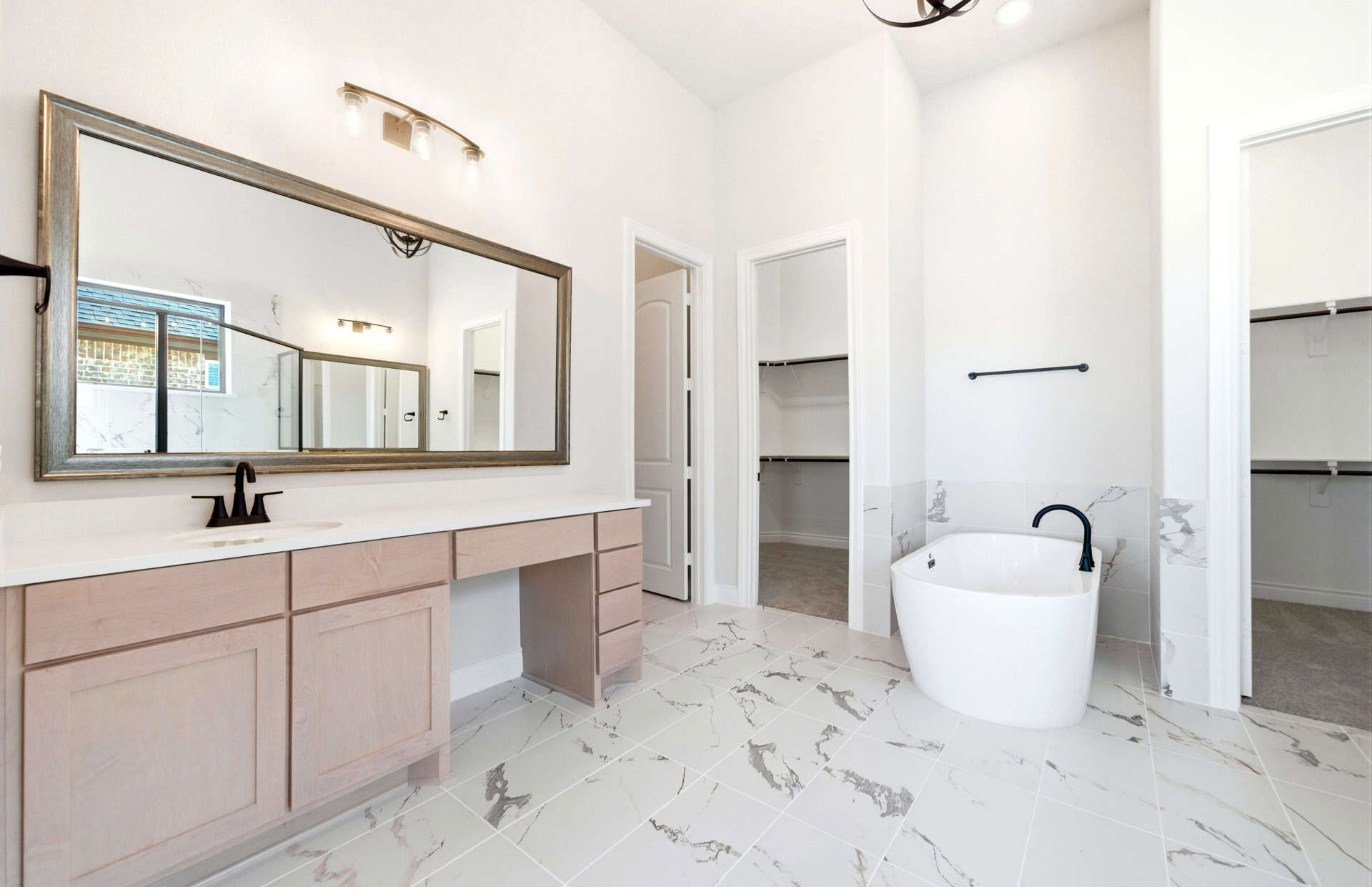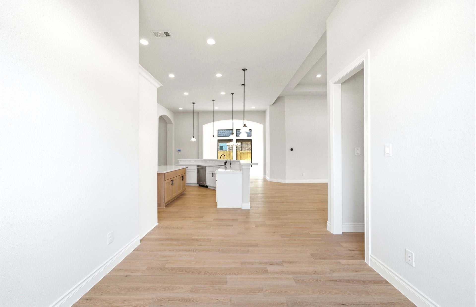 1-story home features a 3 car garage and an elegant oval entry with 13' ceilings that opens to formal study. The kitchen is central to the home and open to the dining room, breakfast room and family room. It features a large island, designer finishes, abundant cabinetry, KitchenAid appliances including a 36” gas cooktop. An open family room features a 14' ceiling with fireplace and a large 3 panel sliding glass door. Master bath includes a freestanding tub, separate shower and His and Hers vanities. Outside features a stucco elevation, a 30’ covered patio and full yard sprinkler system.