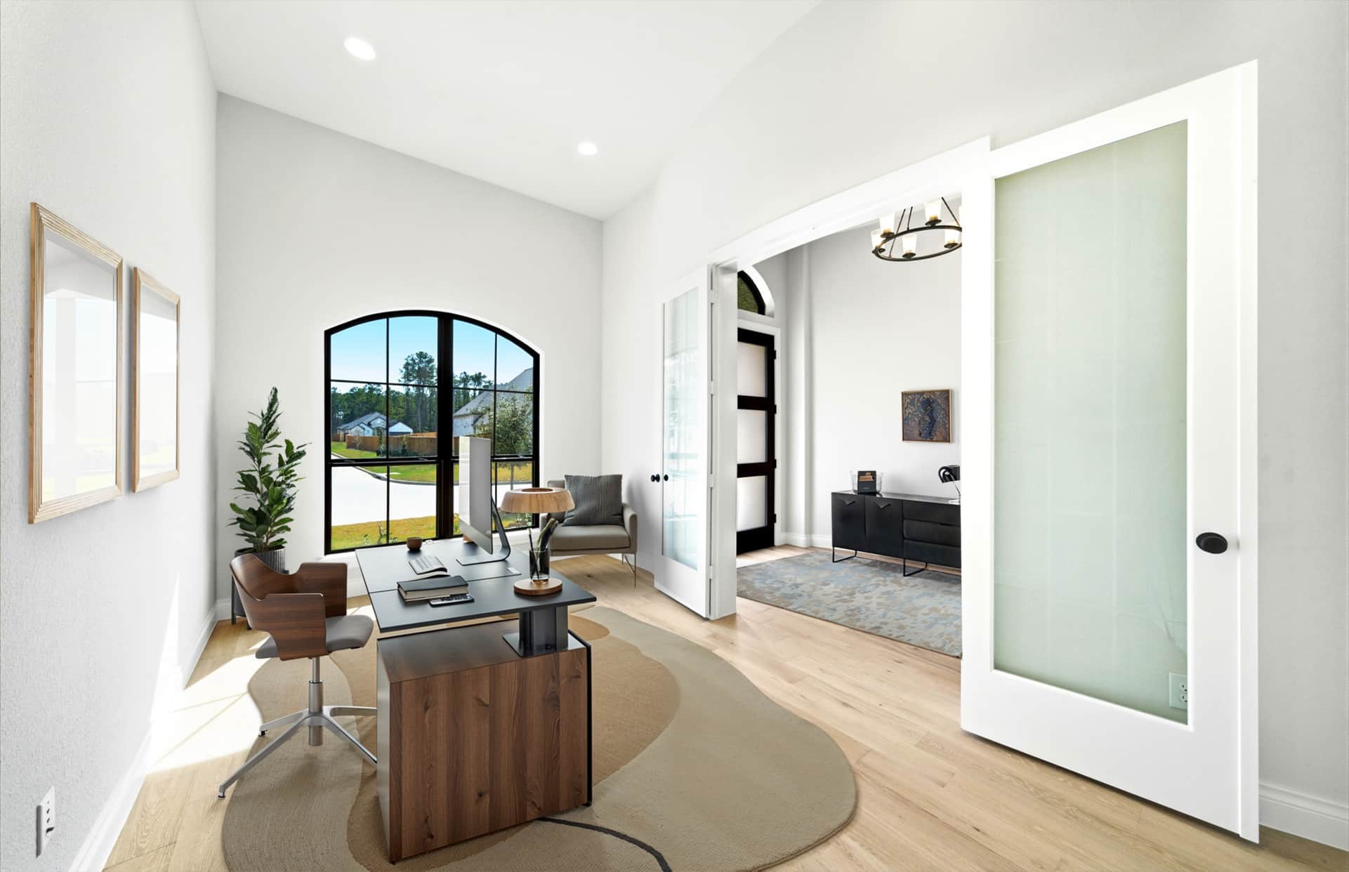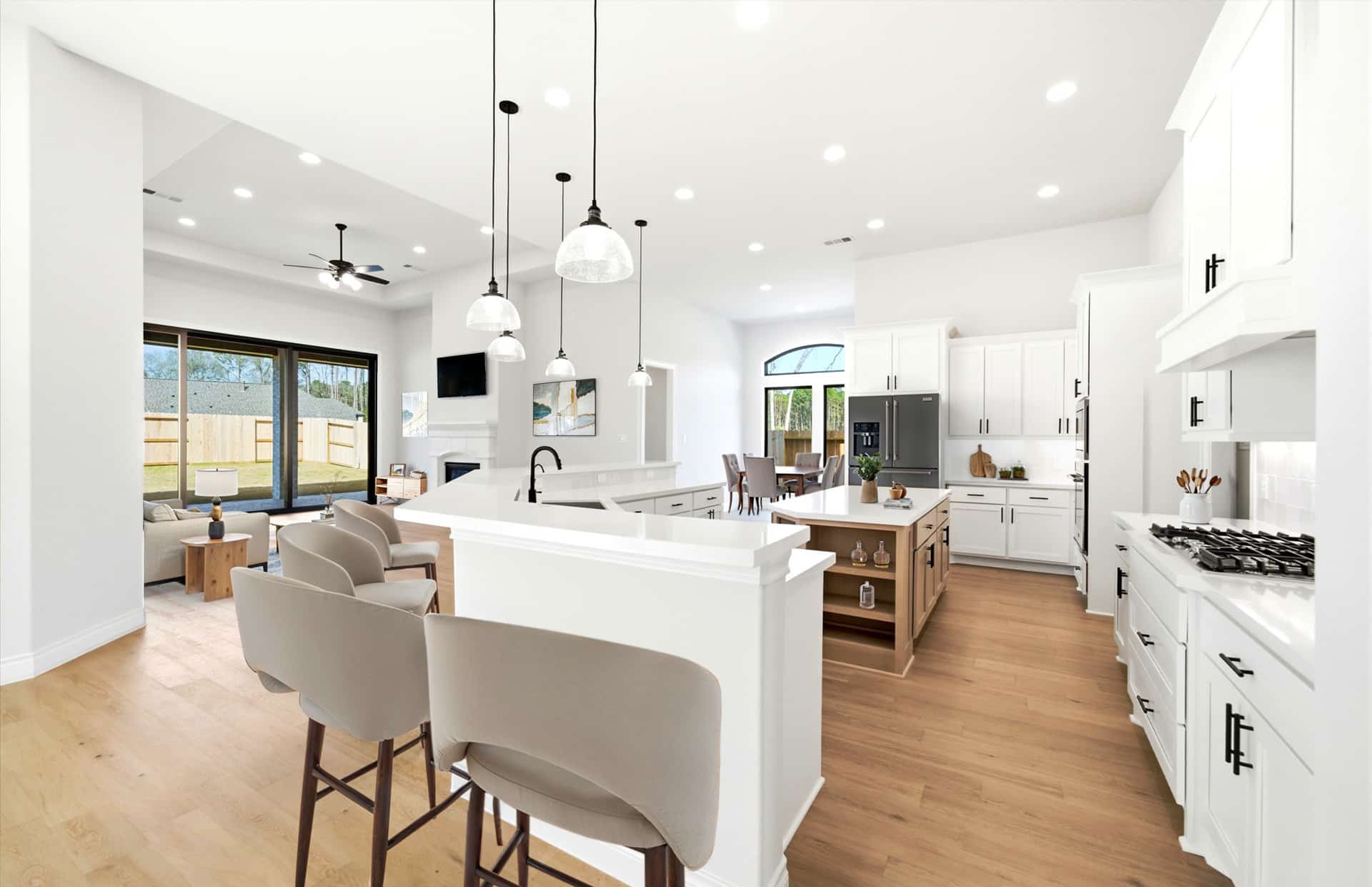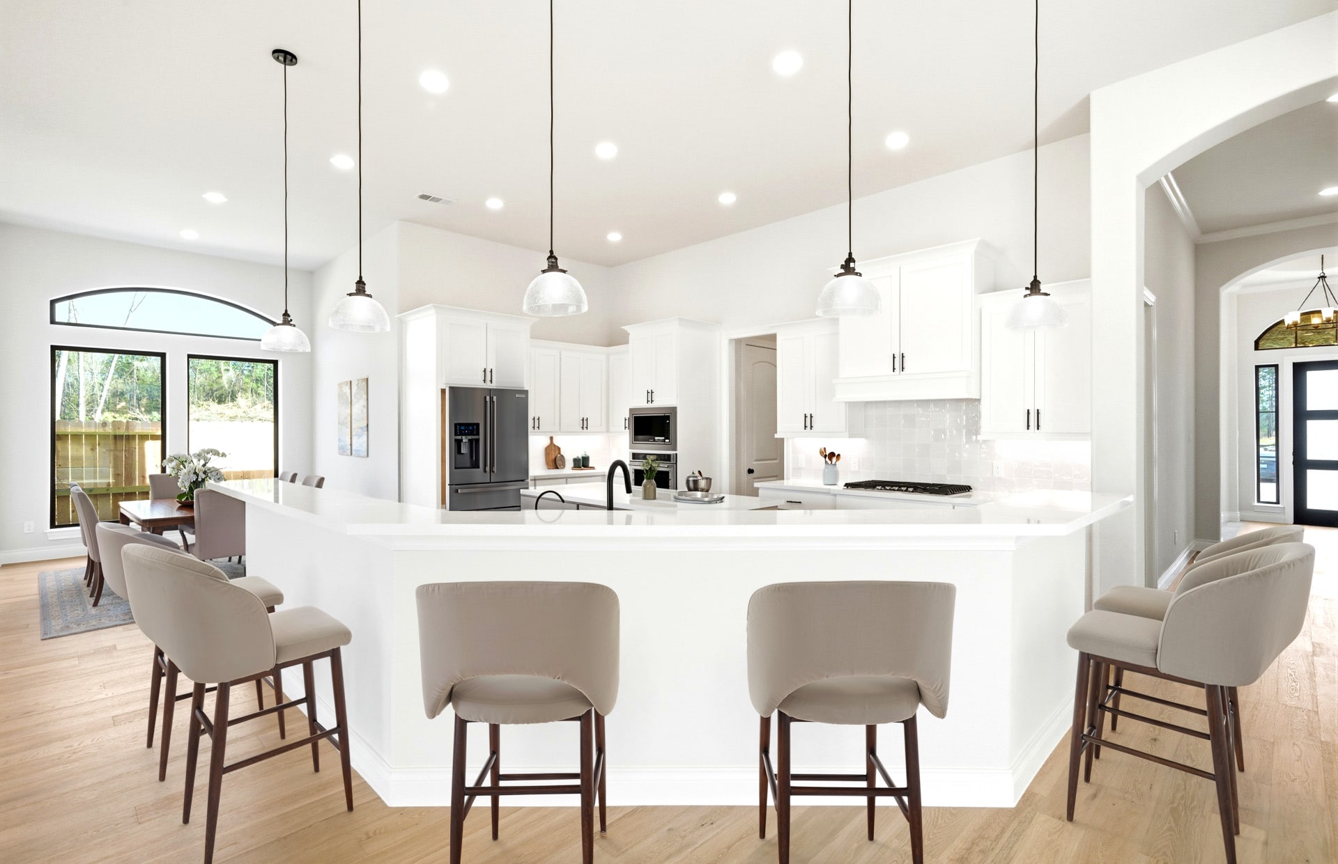 1-story home features a 3 car garage and an elegant oval entry with 13' ceilings that opens to formal study. The kitchen is central to the home and open to the dining room, breakfast room and family room. It features a large island, designer finishes, abundant cabinetry, KitchenAid appliances including a 36” gas cooktop. An open family room features a 14' ceiling with fireplace and a large 3 panel sliding glass door. Master bath includes a freestanding tub, separate shower and His and Hers vanities. Outside features a stucco elevation, a 30’ covered patio and full yard sprinkler system.